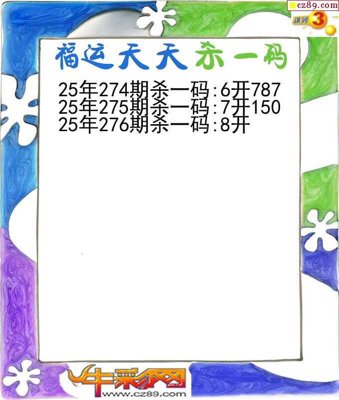 福运天天杀一码276期体彩P3图谜
