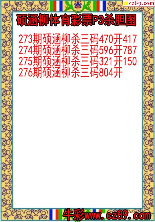 > 25年276期硕涵柳体育彩票P3杀胆图