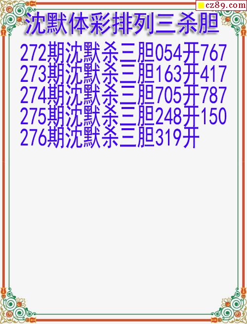 25年276期沈默体彩排列三杀胆图迷